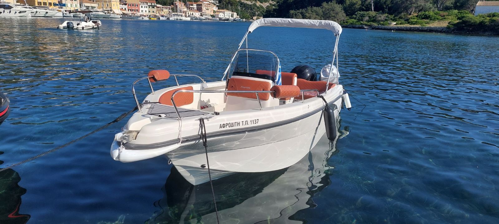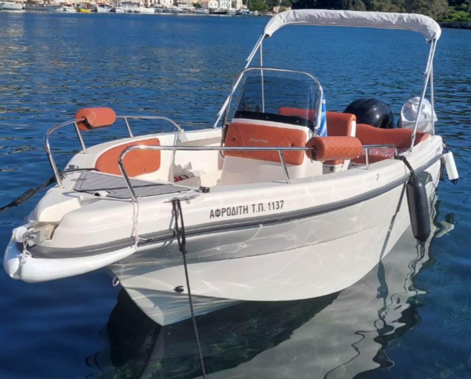 With this boat you can sail along the coasts of Paxos and Antipaxos enjoying the wonderful landscapes of the lake. This boat requires a driver's licence.